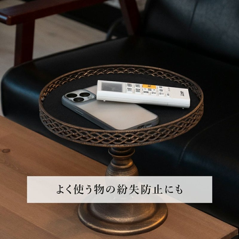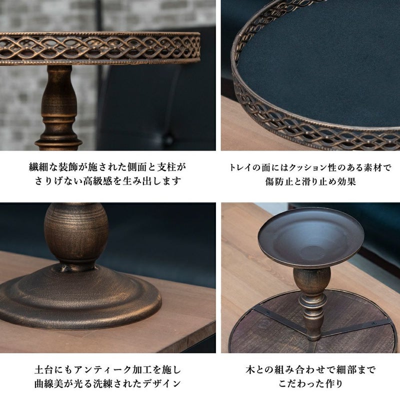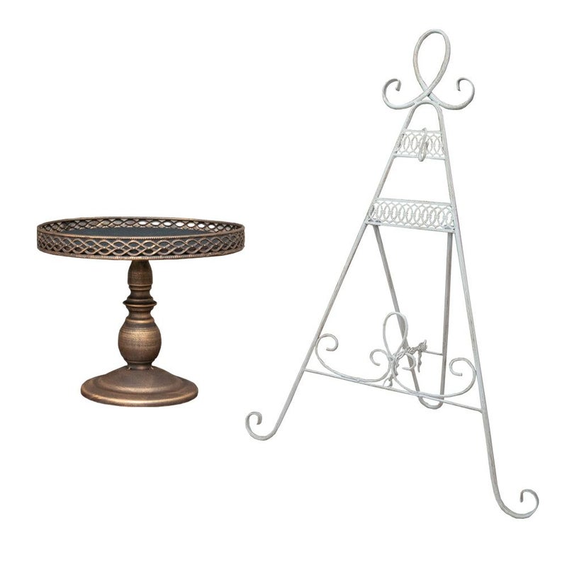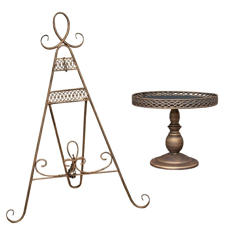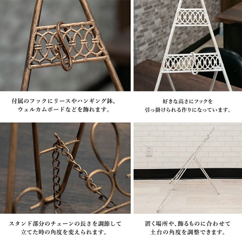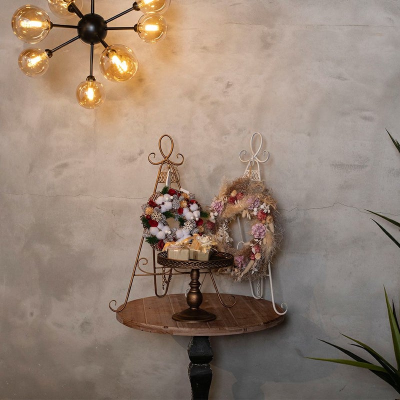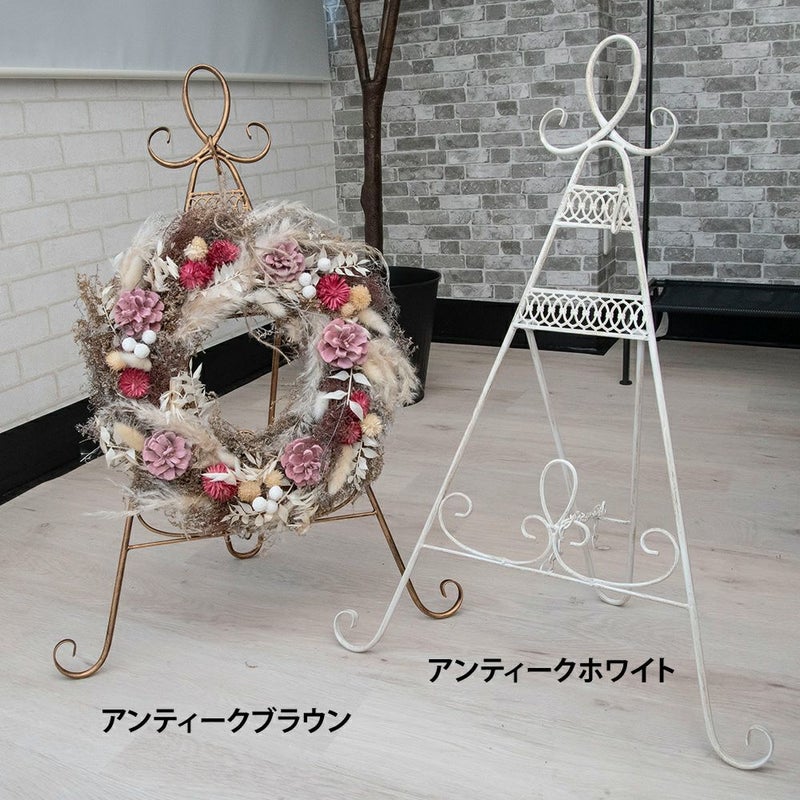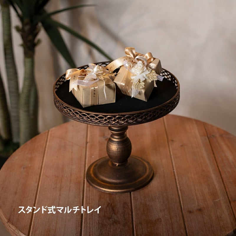 アンティーク調の折り畳み式リーススタンドとアンティークな風合いのスタンド式マルチトレイのセット。