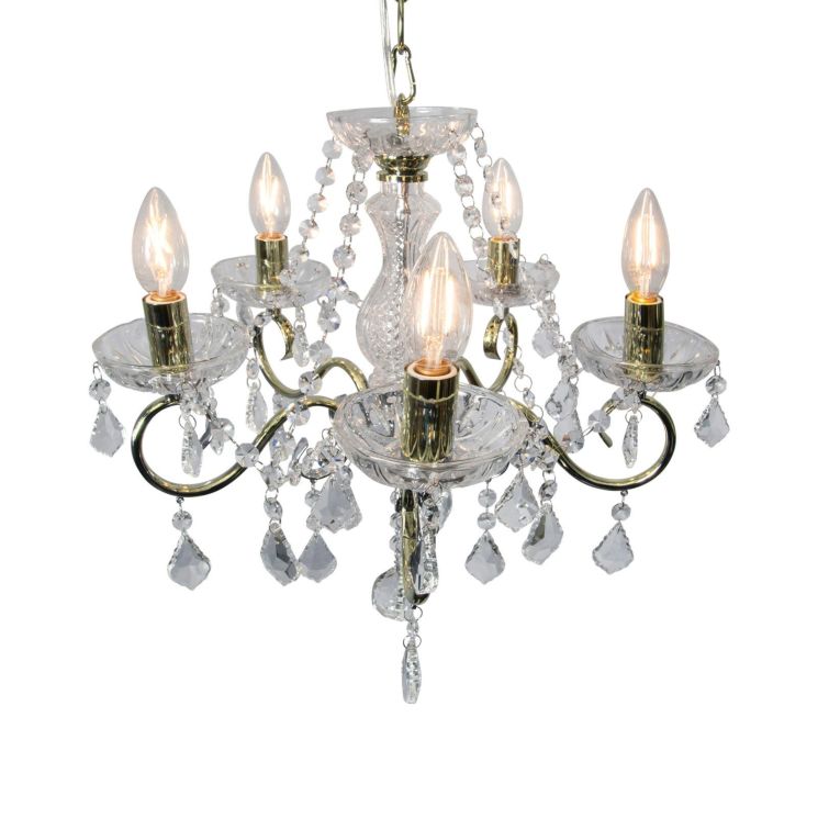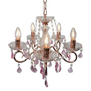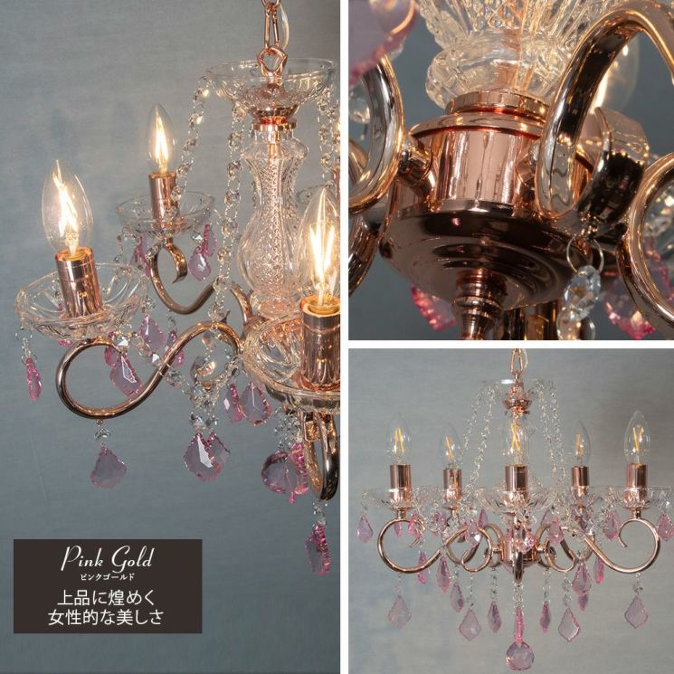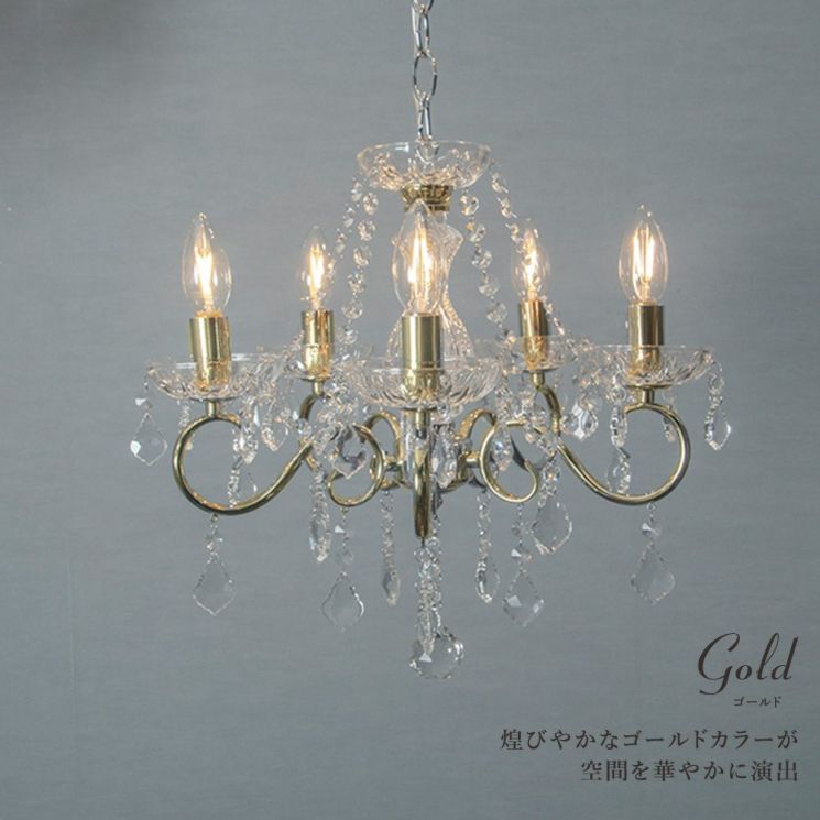 豊富なクリスタルガラスとガラスの受け皿が特徴の5灯シャンデリア【Henri アンリ】。
