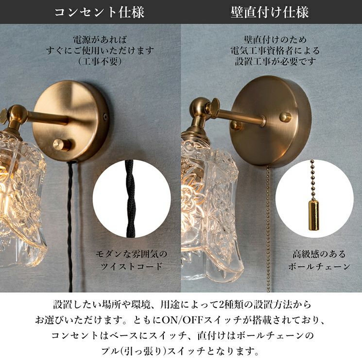 電源コンセント/壁直付けの工事タイプの2種類ございます