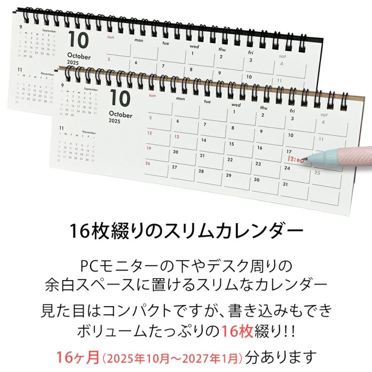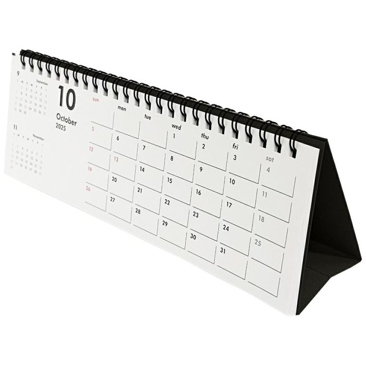 10月始まり 2026年 卓上 スリムカレンダー 日曜始まり 書き込み 2025-2027