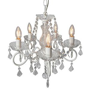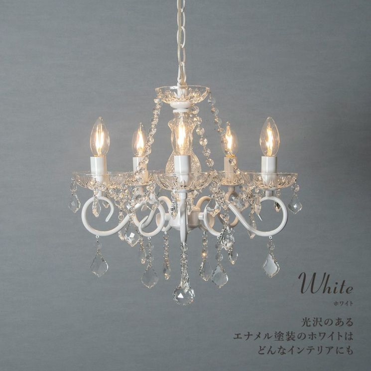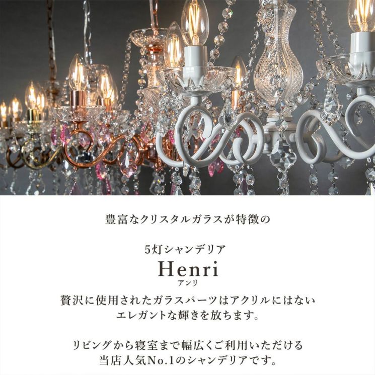 豊富なクリスタルガラスとガラスの受け皿が特徴の5灯シャンデリア【Henri アンリ】。
