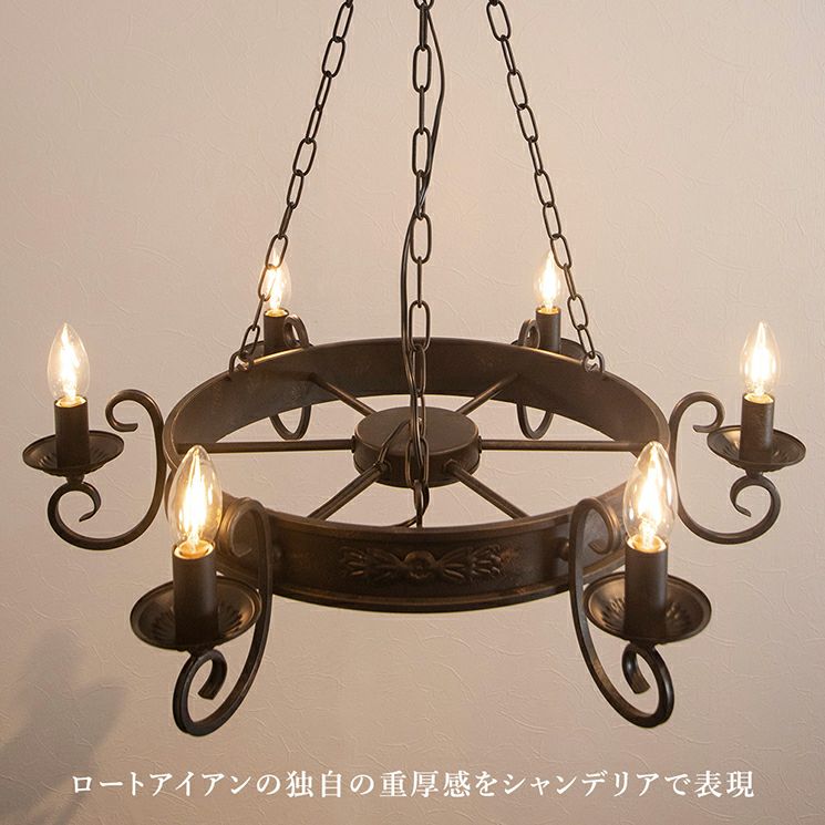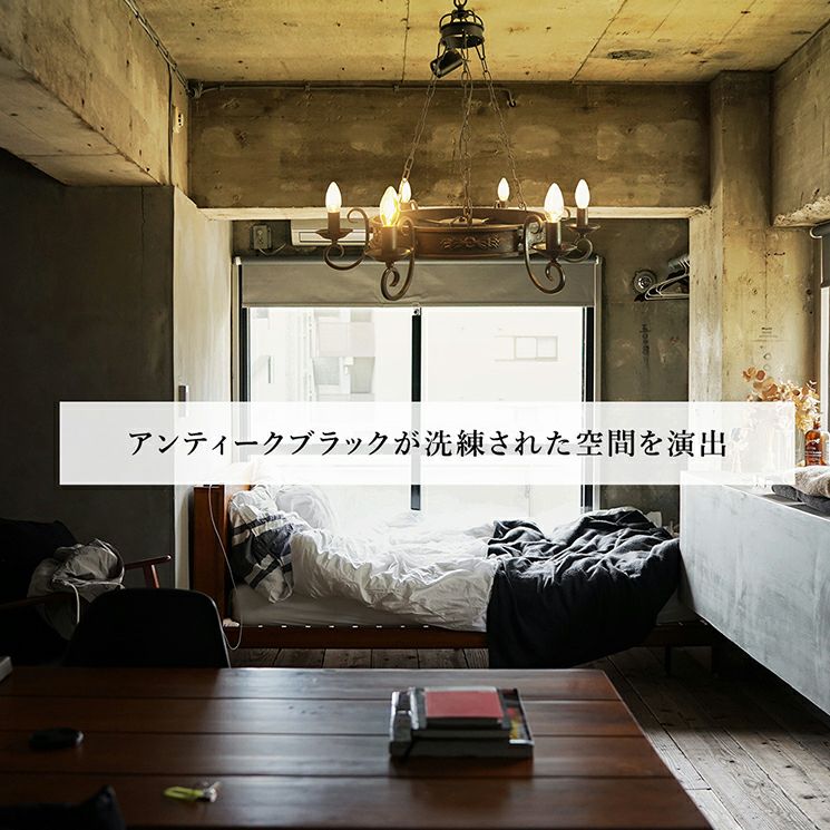 素朴で重厚感のあるマットな黒の6灯シャンデリア。