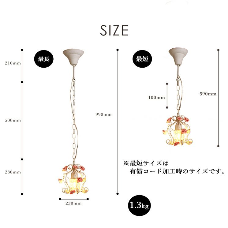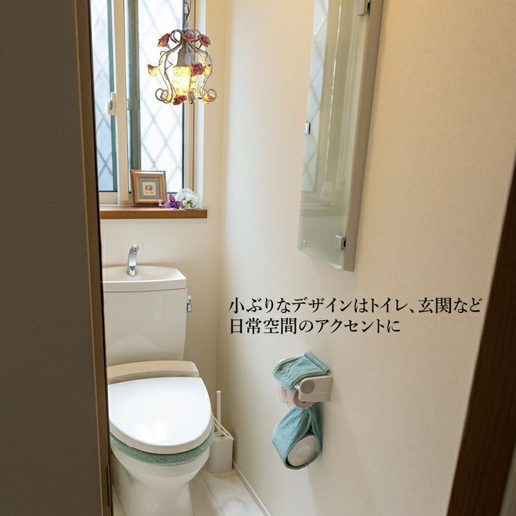 商品説明 アンティーク加工が施されたボディにピンクのバラが特徴的な、1灯シャンデリア【Tendre/タンドル】。