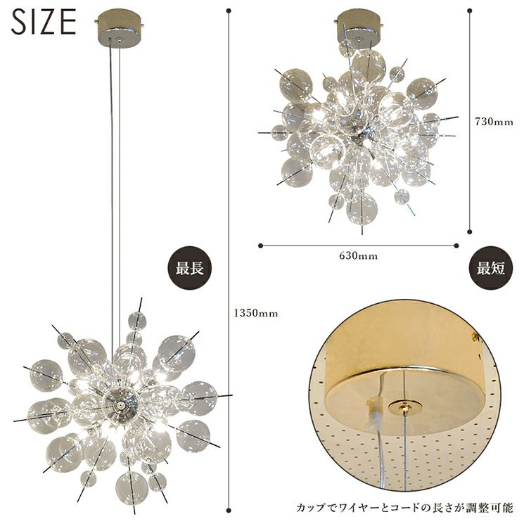 商品説明 人気のバブルシャンデリアBALLONに高級感あふれるガラス別注品が登場。