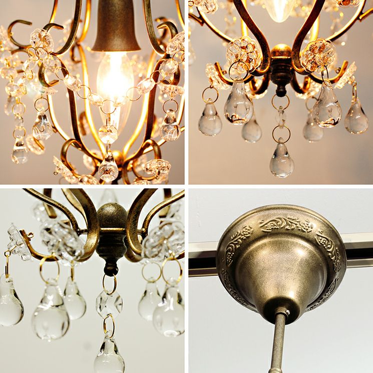 商品説明 雫型のクリスタルガラスとアンティーク仕上げのスチールがゴージャスな表情を醸し出す1灯シャンデリア【Cocotier/ココティエ】。