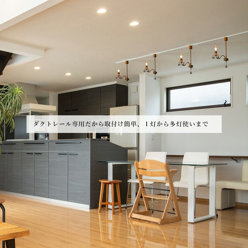 シリーズに2灯と3灯も展開しております。レールに複数並べて設置していただくとラグジュアリーな空間に。