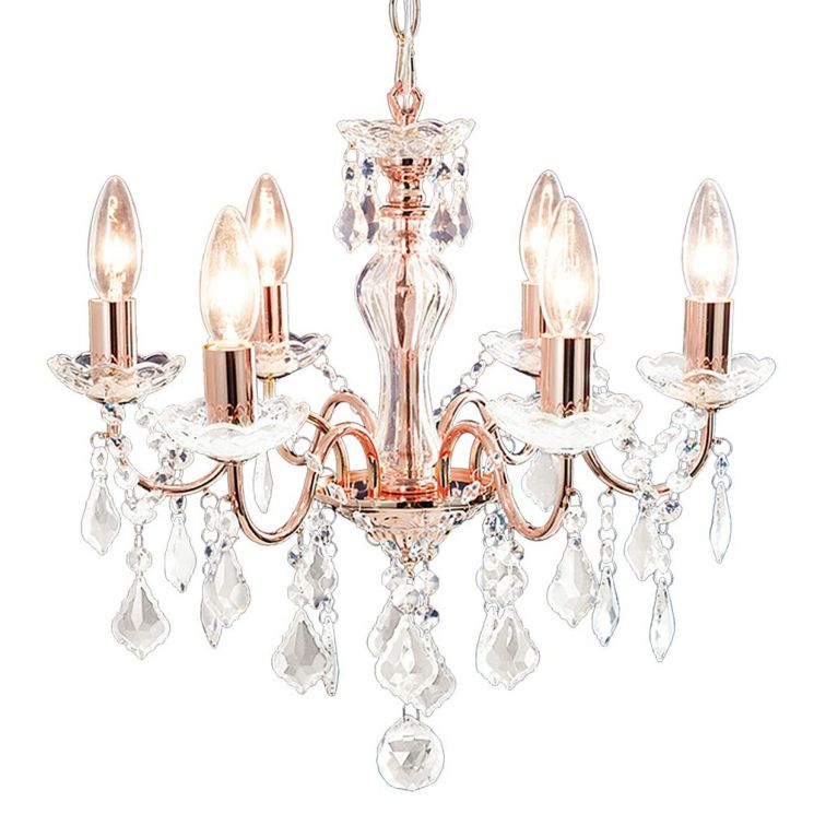 商品説明 繊細なフォルムとクリスタルガラスの輝きが魅力の6灯と8灯のピンクゴールドシャンデリア Antoine (アントイン)