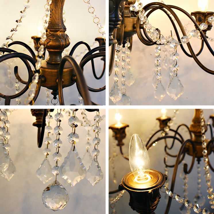 アンティークカラーのボディに贅沢につけられたクリスタルガラスが光を受けて輝き、ラグジュアリーな空間を演出します。