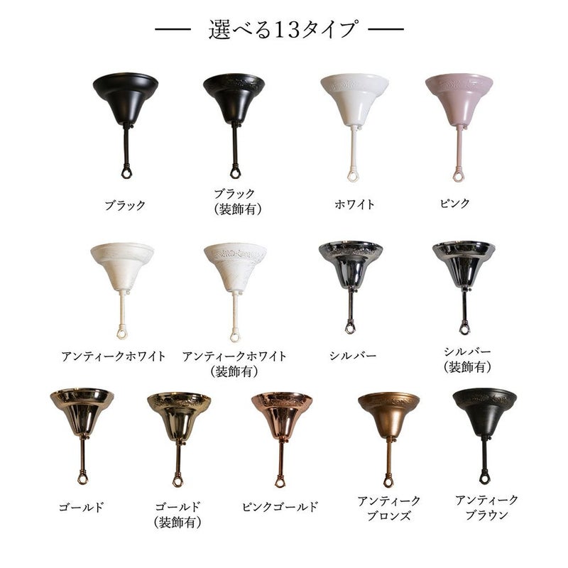 カラー ホワイト、アンティーク、ゴールド、ピンクゴールド、シルバー、ブラック