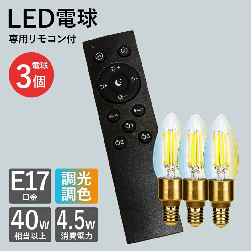 便利グッズ 調光調色対応 シャンデリア型 LED電球&専用リモコンセット E17