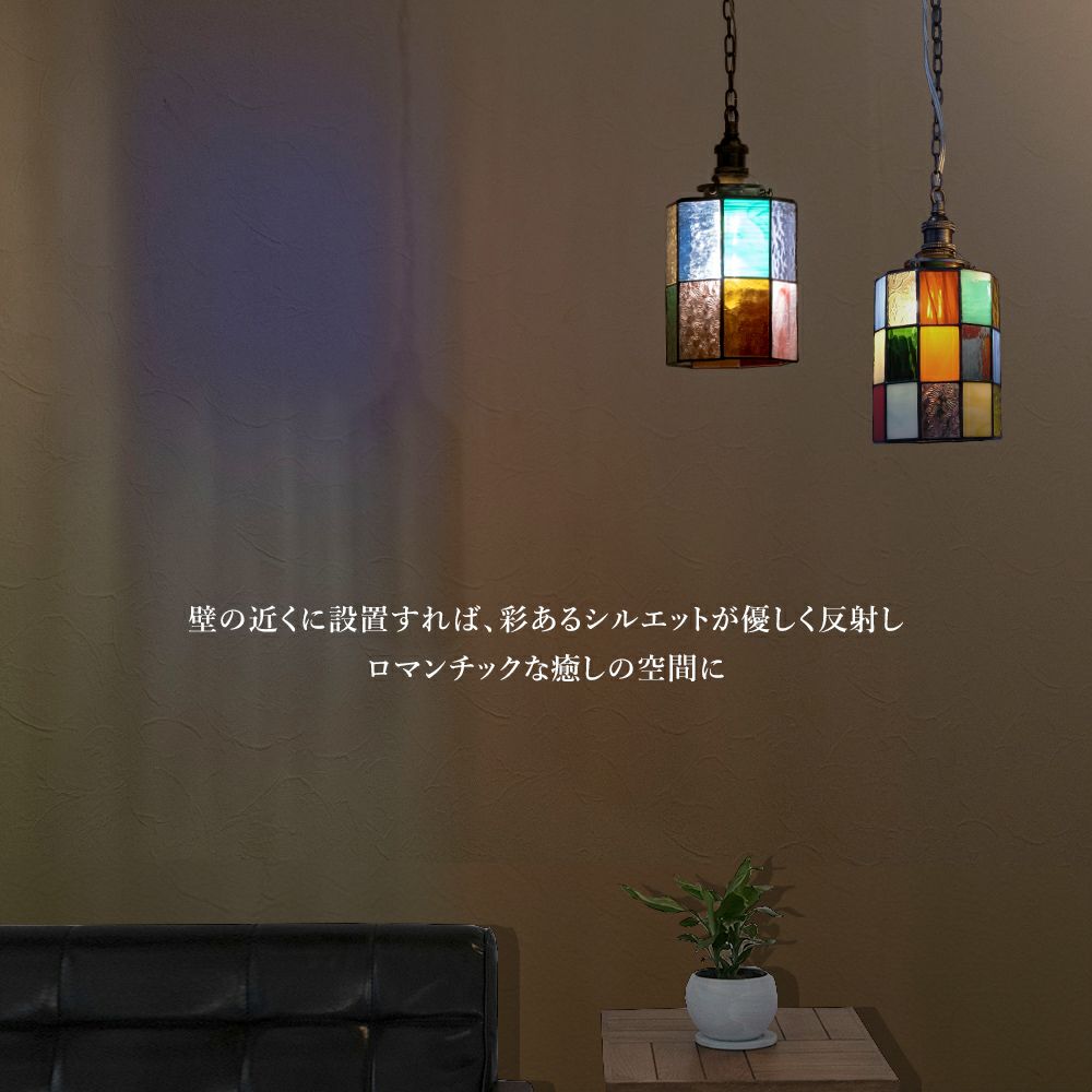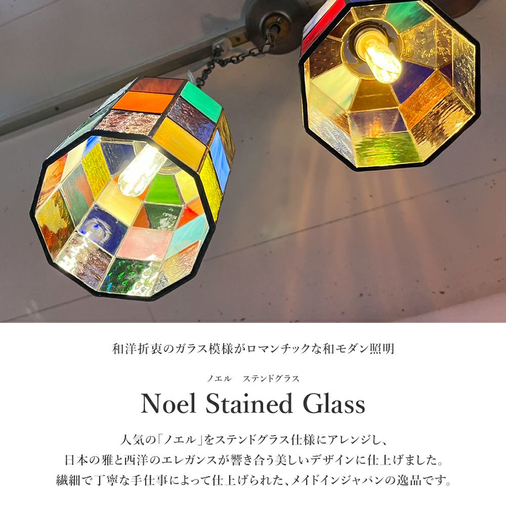 ステンドグラス作家によるハンドメイドのシェード 和洋折衷の1灯ペンダントライト ノエル ステンドグラス