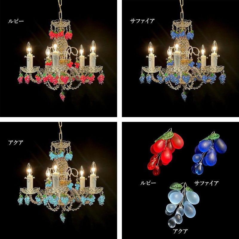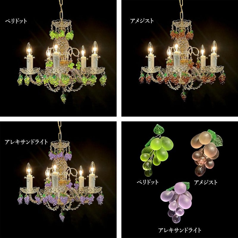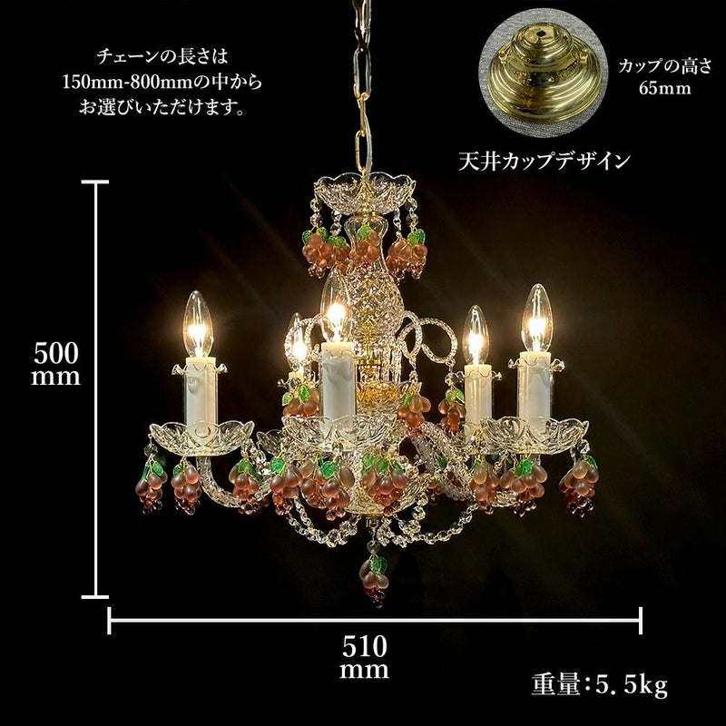 【受注生産】本場チェコから輸入 チェコ製 ボヘミアンクリスタル グレープ シャンデリア 5灯 ティリオン/Thyrion