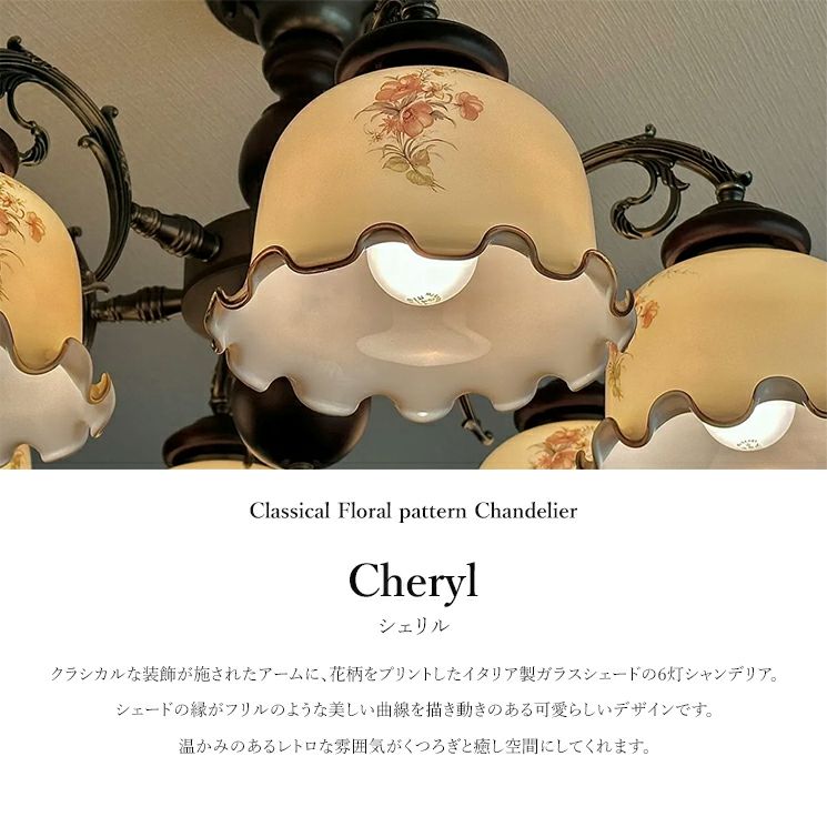 他の画像を見る 【受注生産】クラシカルな花柄プリントシャンデリア 日本製 木材 ガラスシェード シャンデリア 6灯 シェリル/Sheryl LED対応 6灯 CLC ¥ 184,800 税込 在庫切れ 詳細を見る お気に入りに登録する