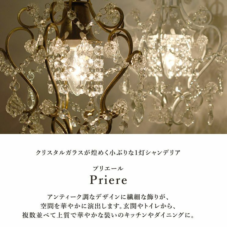 商品説明 小ぶりで可愛らしい印象の1灯シャンデリアPriere(プリエール)。