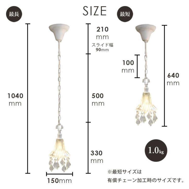 ※ガラスパーツを含む、カップとチェーン以外のサイズ