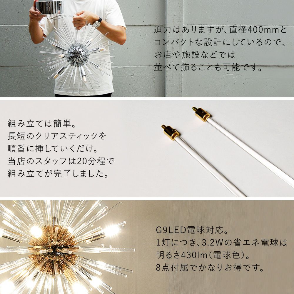 他の画像を見る ミッドセンチュリーデザインをモダンにアレンジ 8灯 スプートニクランプ ペンダントライト BABEL (バベル) SP ウニランプ LED電球付属 8灯 GO SV ¥ 34,800 税込 詳細を見る お気に入りに登録する