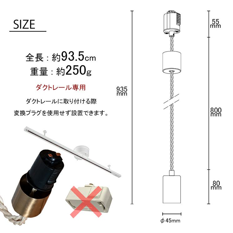 ダクトレール専用のシンプルで使いやすいペンダントライト 複数並べてお好みのLED電球で遊びましょう