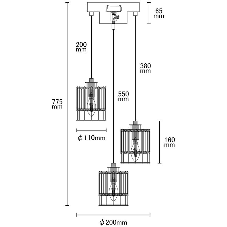 <デフォルトコード>長:550mm、中380mm、短200mm