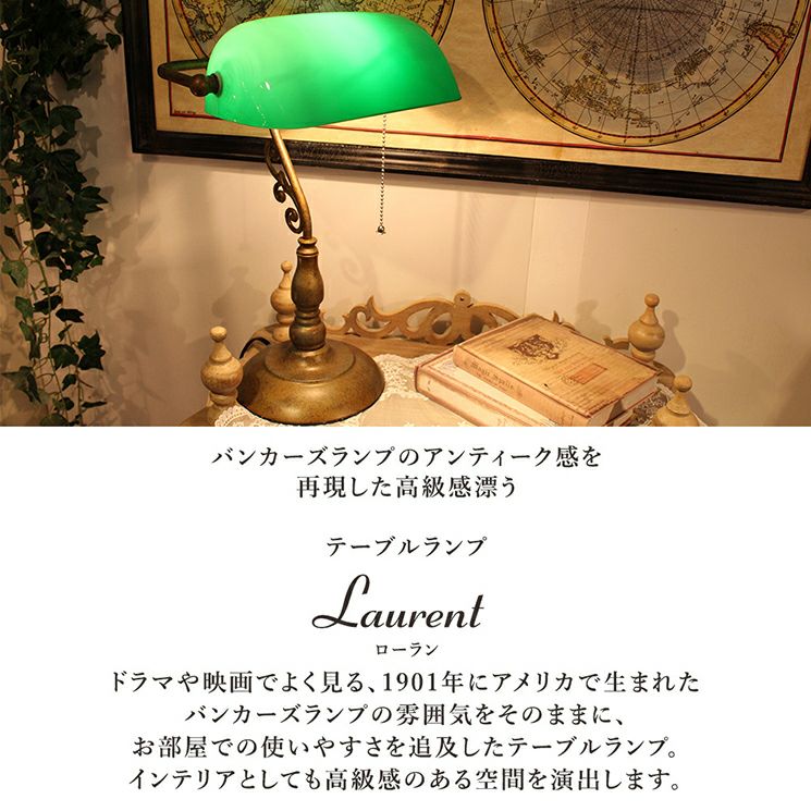 バンカーズランプのアンティーク感を再現した高級感漂うテーブルランプ【Laurent/ローラン】。