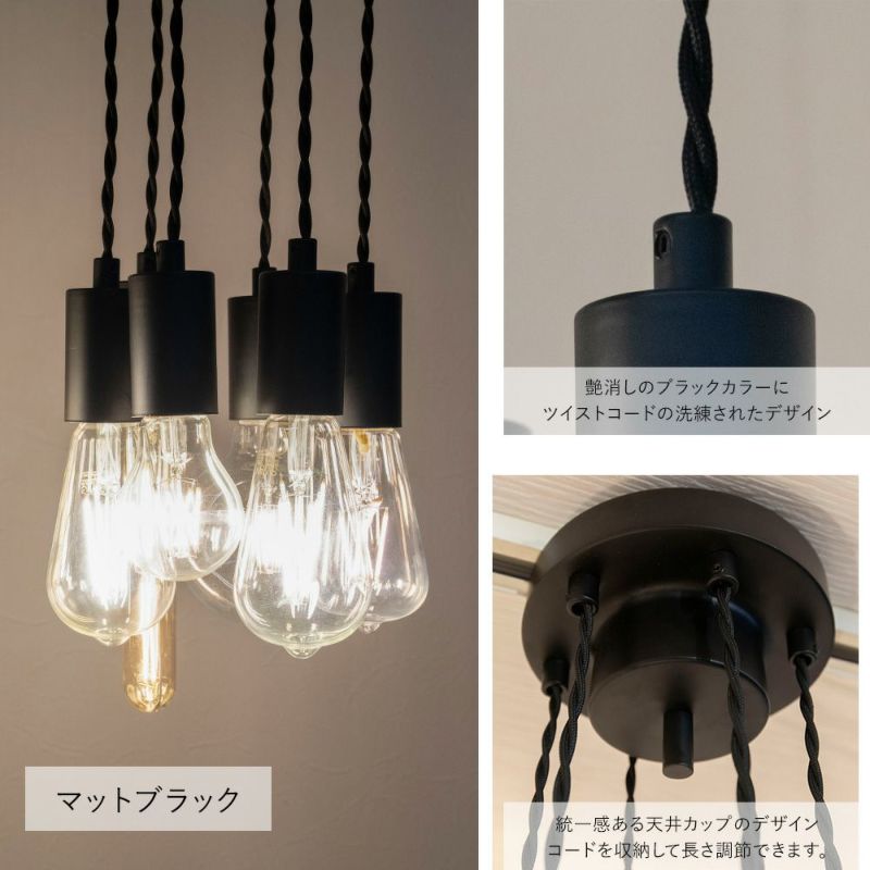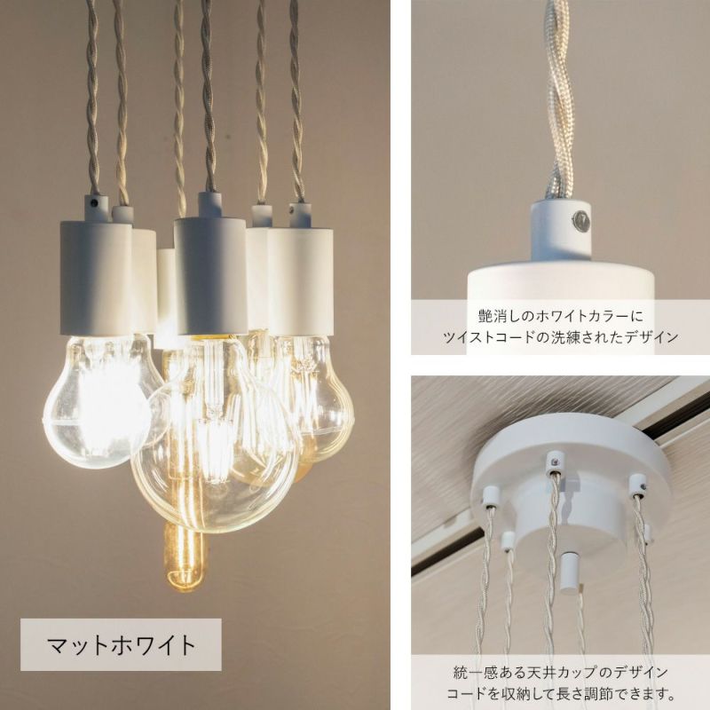 人気のヌードランプシリーズにそれぞれ長さ調整できる6灯ペンダントライト。