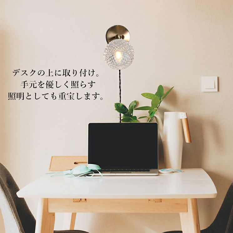 デスク上の壁に取付けて手元を優しく照らす照明としても。