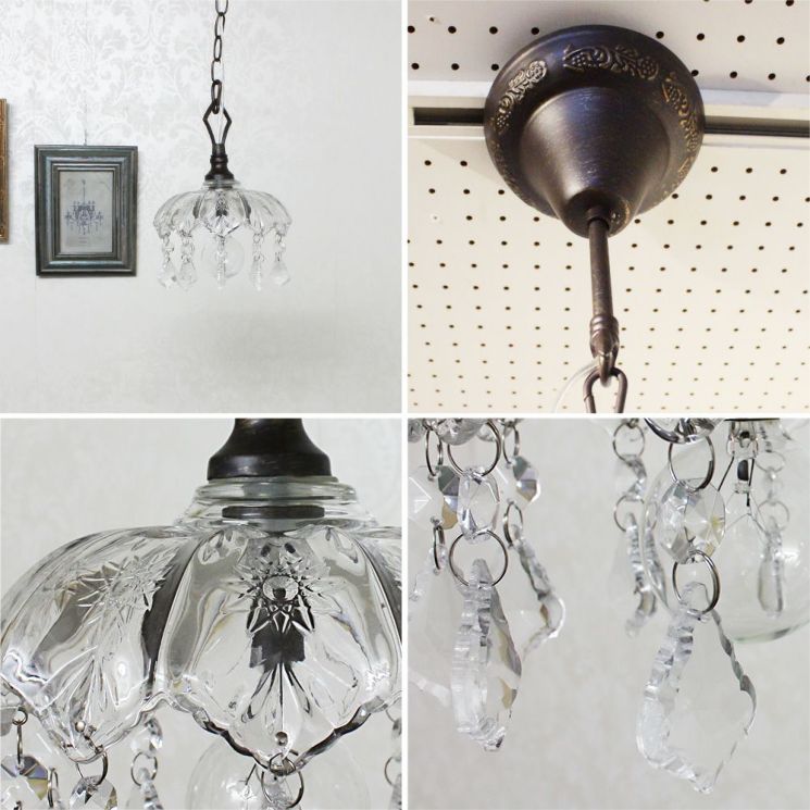 繊細なカットガラスにアンティークブラックの金具が映える1灯ペンダントライト Plume (プリュム)。