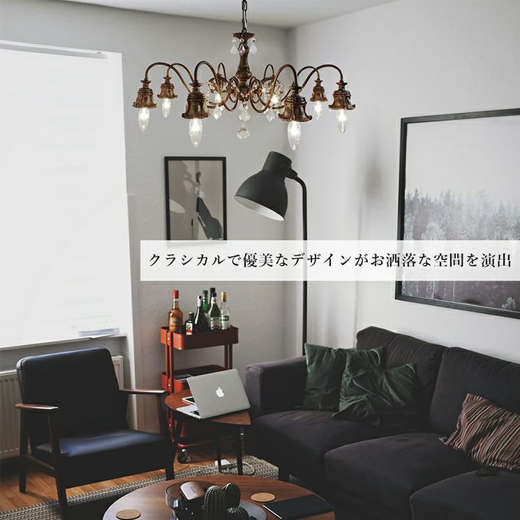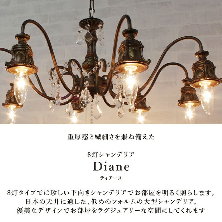 重厚感と繊細さを兼ね備えた8灯シャンデリア【Diane/ディアーヌ】。