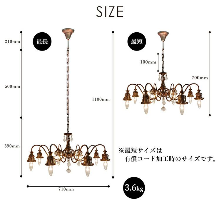 8灯シャンデリアでは珍しい下向きシャンデリアでお部屋を明るく照らします。