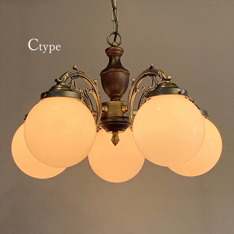 商品説明 クラシカルな装飾が施されたアームにレトロな雰囲気のガラスシェードを組み合わせた5灯シャンデリア
