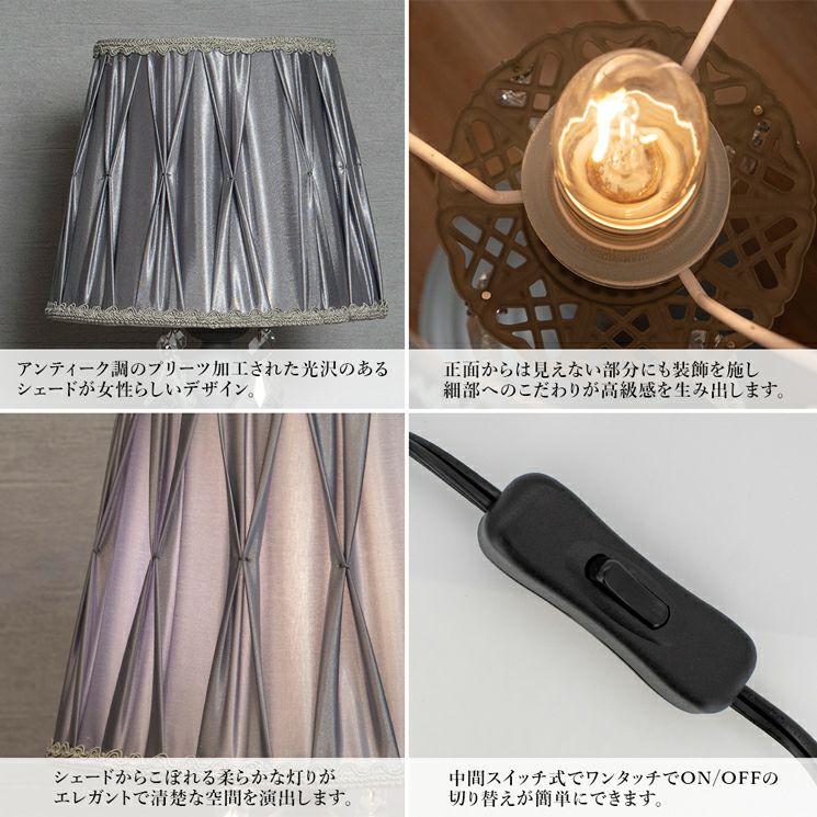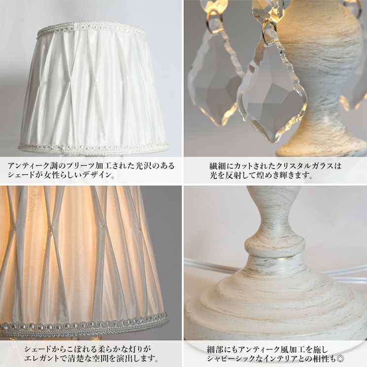 アンティークホワイトはエイジング塗装の本体にクリスタルの組み合わせでクラシカルで上品な雰囲気を演出してくれます。、