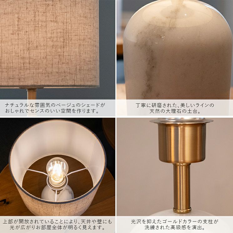 自然素材の麻のシェード、天然大理石の土台の組み合わせが