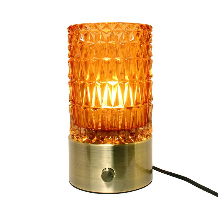 繊細なカットガラスが光を反射して煌めくアンティーク調のテーブルランプ。ちょうどいいサイズ感がベッドサイドなどにマッチします。